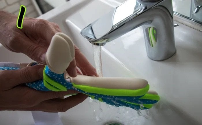 Her kullanımdan önce eldivenlerinizi ılık suyla yıkadığınızdan emin olun. Bu işlem özellikle özel aqua yapışkan köpüklerle optimum kavrama sağlar.